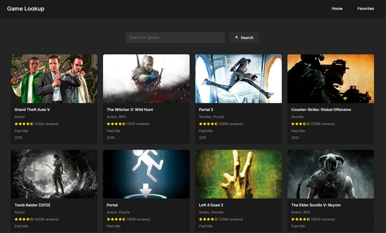 To help me learn the react.js framework, i built a simple game lookup application using RAWGs database with api calls. This project gave me a good understanding of how react.js projects work and how to utilise api calls into my future projects.